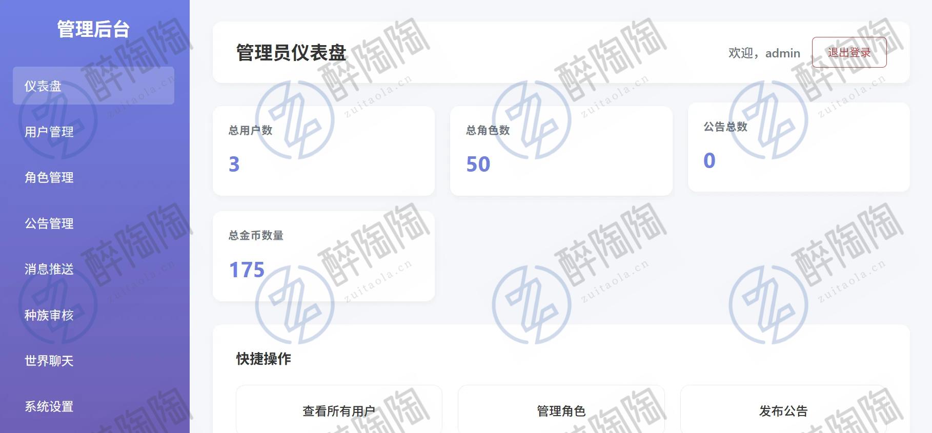 角色管理 :管理玩家游戏角色数据(等级、属性、经验值等)。