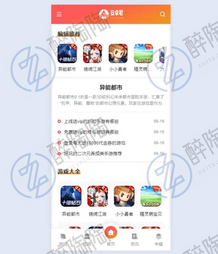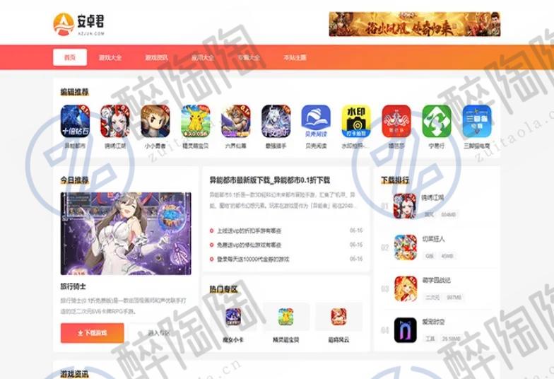 WordPress主题 AZ]下载主题双端应用下载主题 游戏应用AZ]主题是一款基于WordPr2ss开发的双端独立的WordFress游戏应用下载主题。功能上没有一点多门为了下载站量余没用的代码,可以说是专身打造的WordPress主题。SEO优化上下足了功夫,可以说在SEO方面当的棒,目前使超越了目前99.9%WordPress主题。性能优化上也是相秒开。用阿里云99一年的活动机器,10万数据能达到秒开