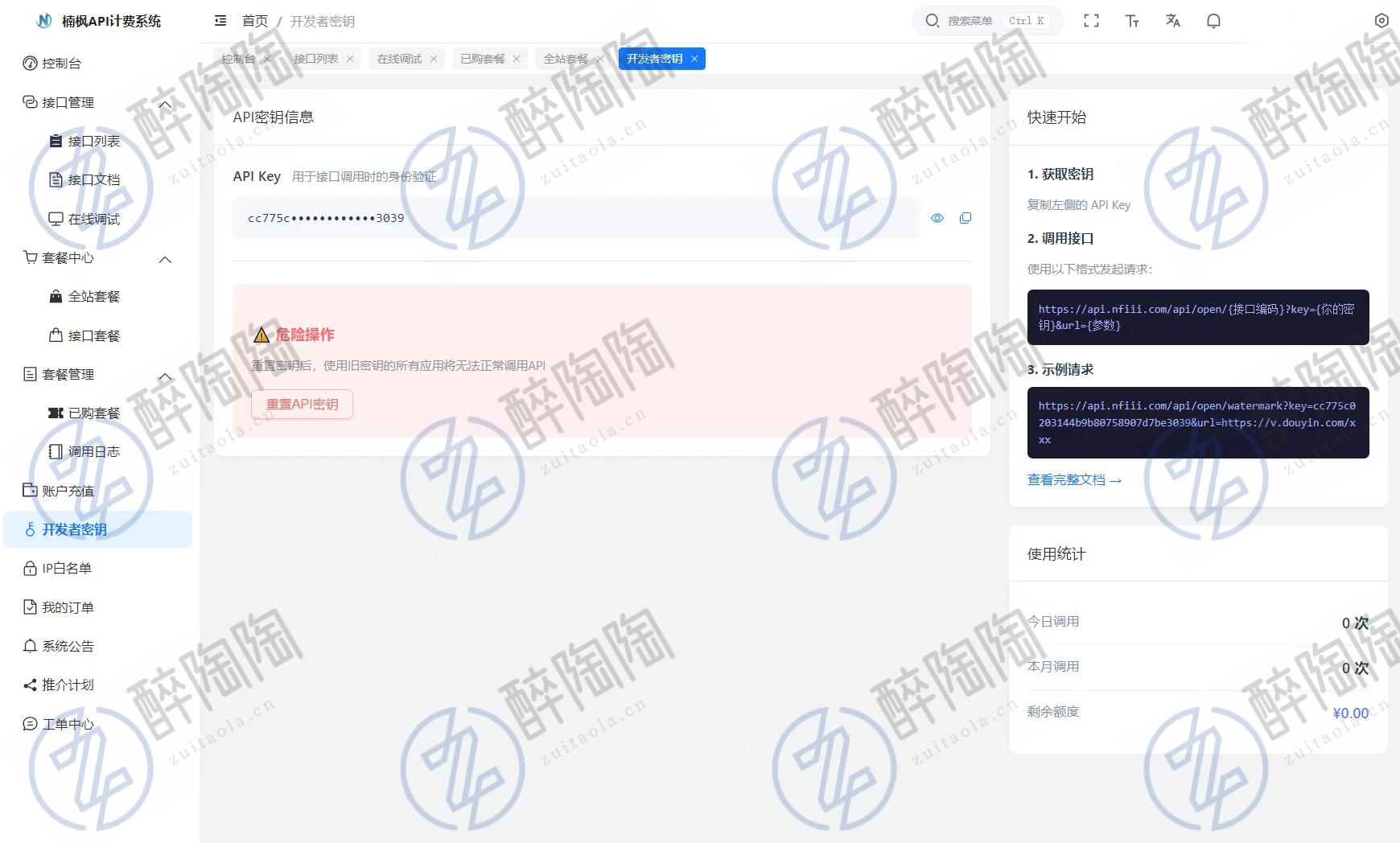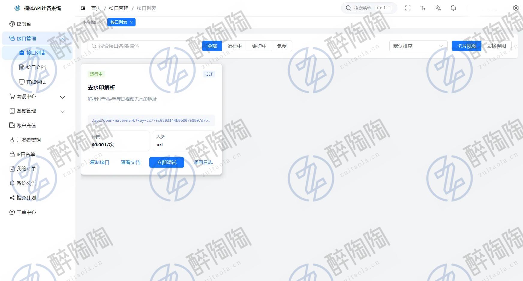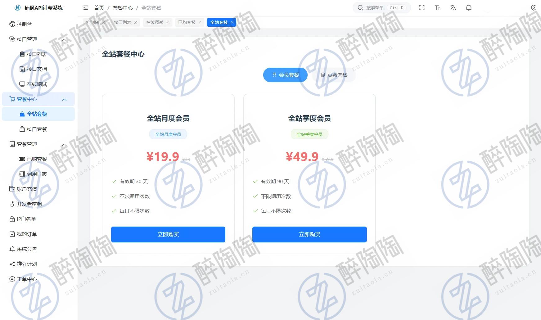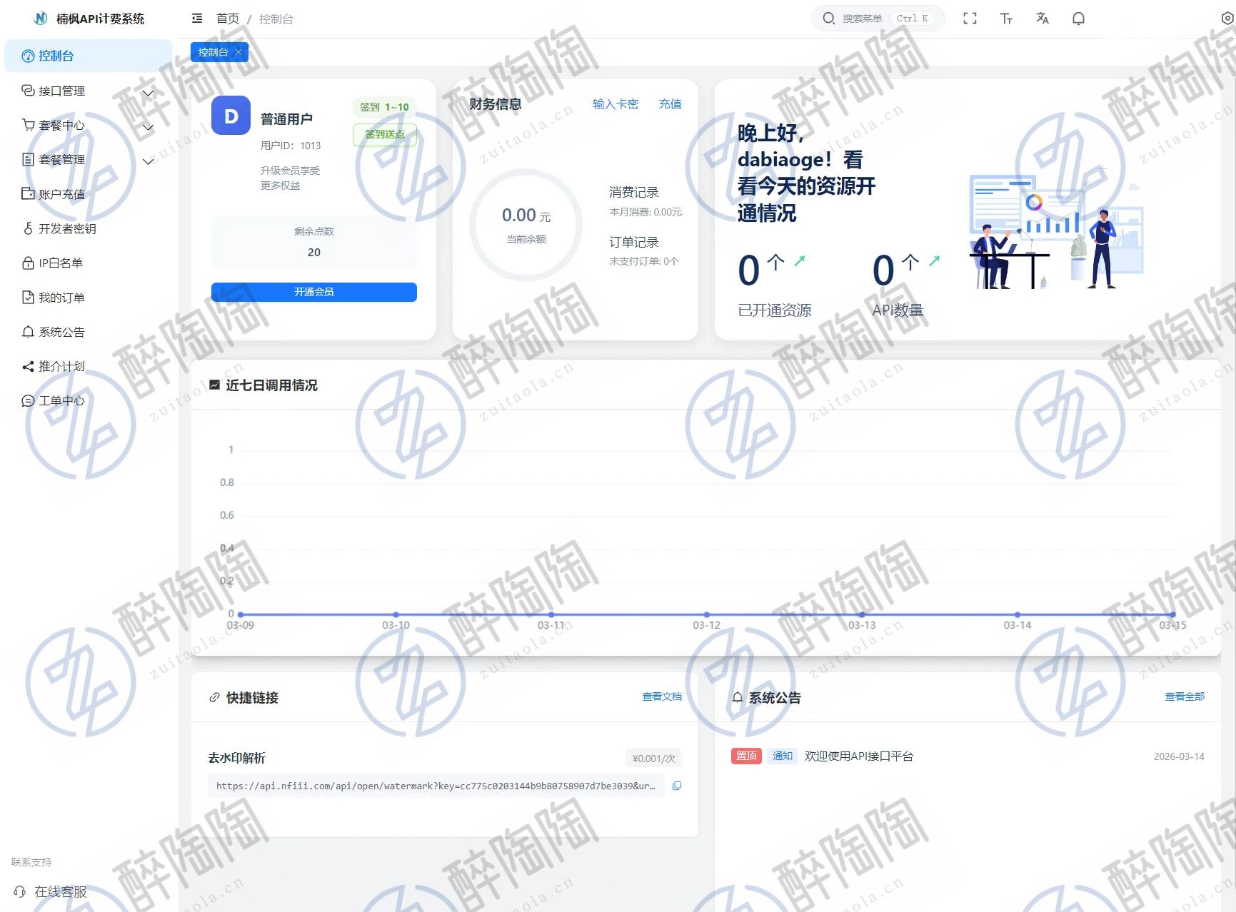 3、调用接口与计费,接口单独设置解析一次费用,例如0.01/次(计费顺序:会员->点数->余额)