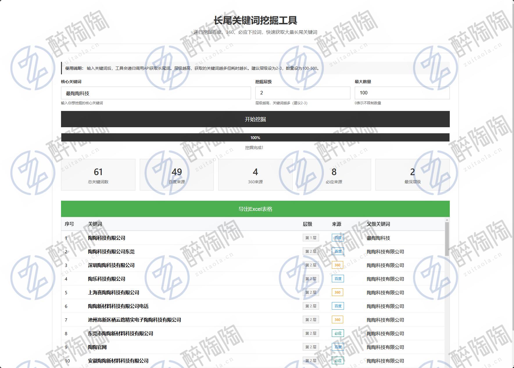 输入一个主词,层级深度,想要的数量,会同步请求百度必应360