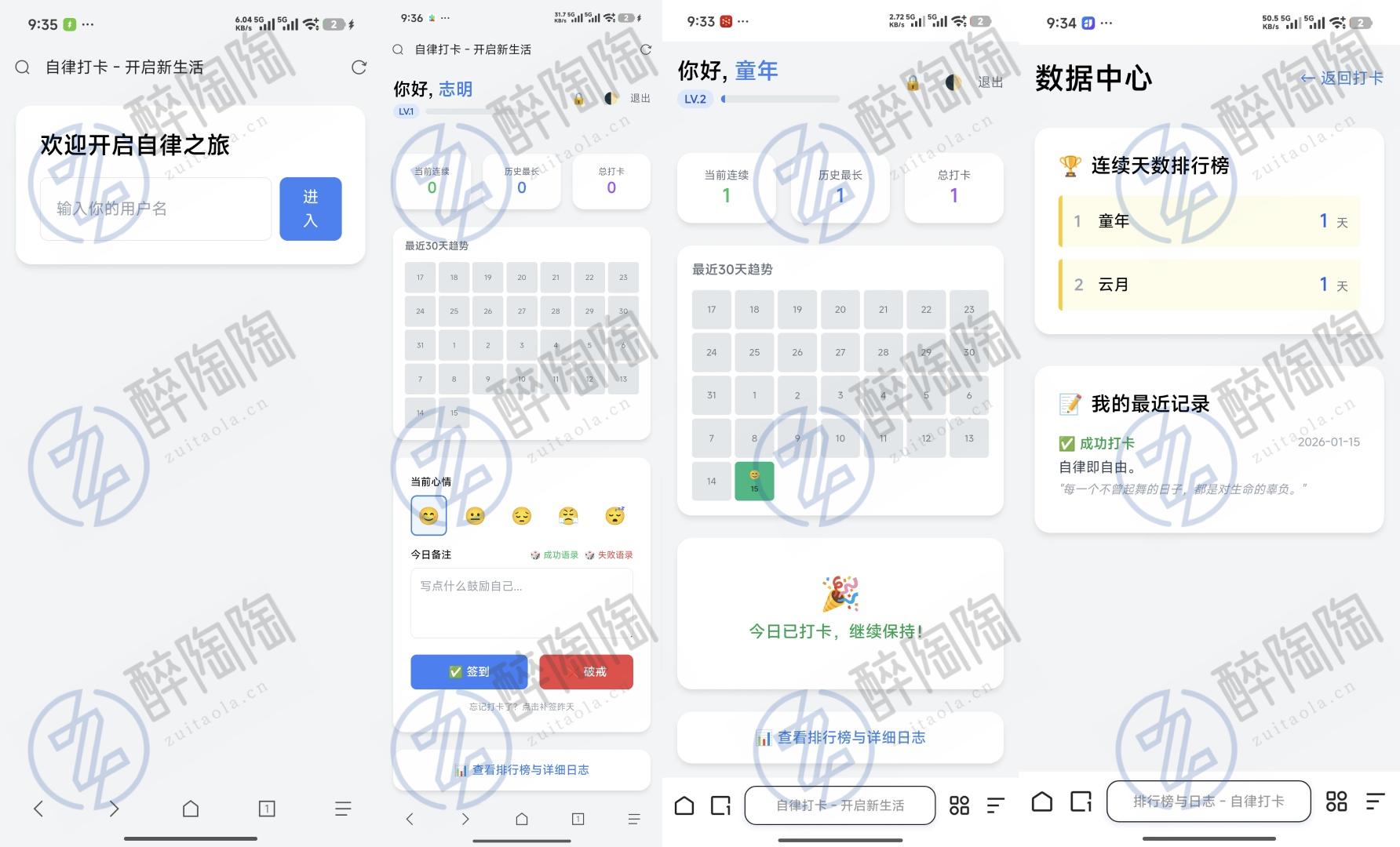 等级系统:签到获得经验,提升等级。