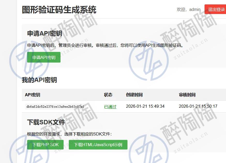 后台管理 API密钥审批与管理 用户管理与删除 注册功能开关 系统公告编辑 验证码参数配置