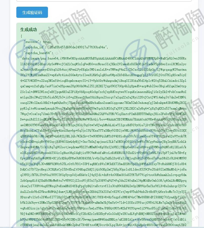 验证码生成与验证 支持自定义验证码配置(宽度、高度、长度、过期时间、字体大小) 生成高安全性的图形验证码,包含干扰线、噪点、波浪线等 验证码以Base64格式返回,方便前端集成 提供独立的验证接口 验证码自动过期清理